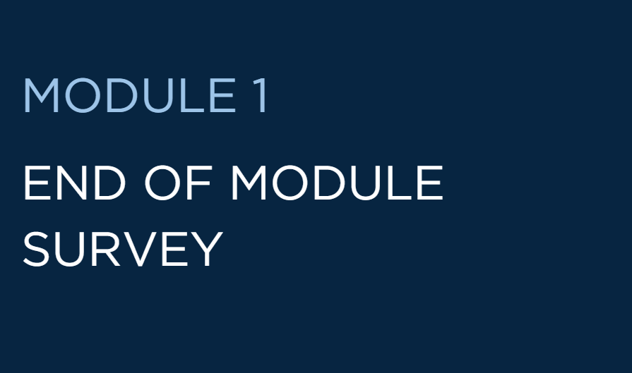 Week 4-5 As we are always trying to improve the quality of service we provide, we would love to hear your feedback on your Module 1 experience. We ask you take 2mins to answer a few quick questions and let us know your thoughts!